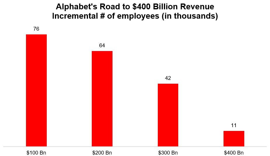 谷歌符合整体规律:每新增千亿营收所需员工数显著递减!