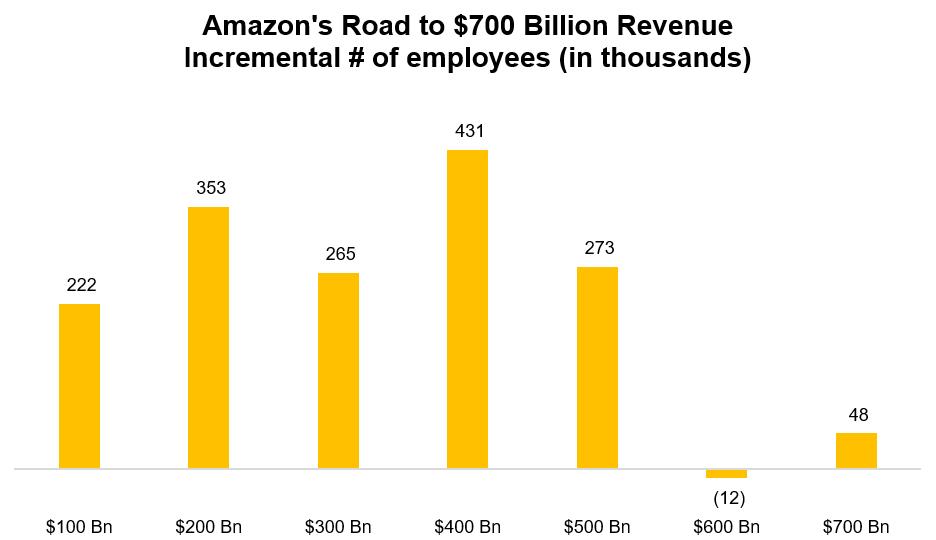 若在3-4年内,亚马逊以仅10-20万新增员工实现万亿美元营收,也不会让人感到意外。