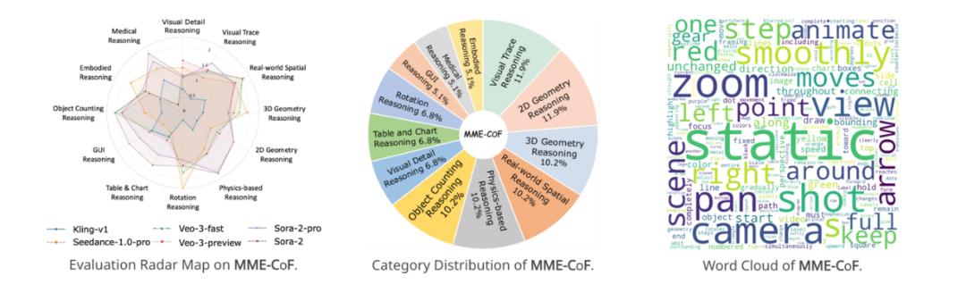 研究团队基于上述实证研究整理了 MME-CoF 基准,以标准化方式评估视频模型的推理潜能。其主要特征包括: