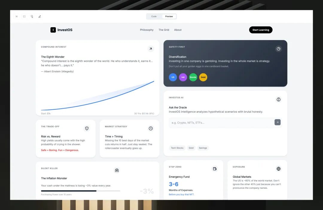 在多轮对话中,Gemini 3能够理解你的审美偏好、编码风格,甚至是你没有明说的设计原则。如果你倾向于极简主义,几次交互后,Gemini就会自动在后续生成中减少装饰性元素。如果你喜欢丰富的动画,它会逐渐增加交互效果的复杂度。
