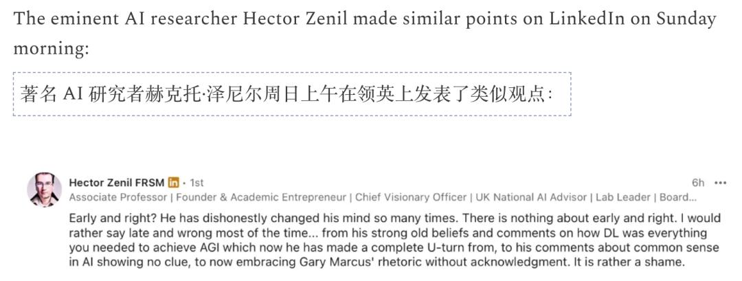 但这篇文章,和LeCun本人却遭到了马库斯的极度不认可。