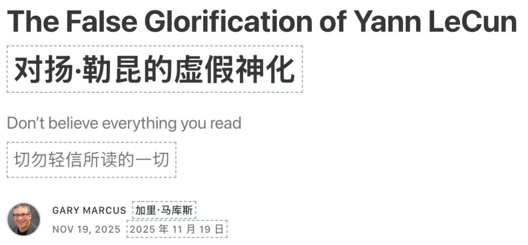 马库斯这次依然是怒喷Yann LeCun,《对Yann LeCun的虚假造神》。
