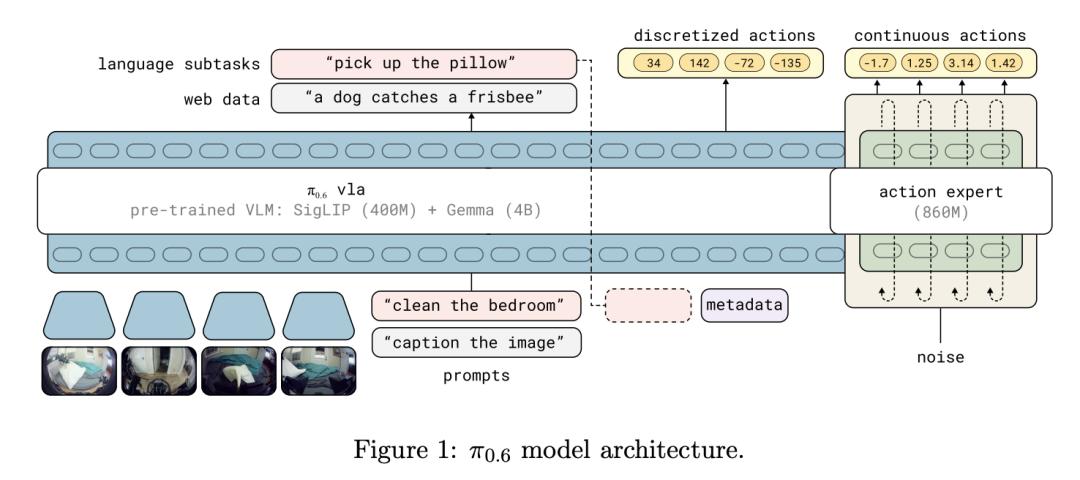 π0.6的Backbone从Pi0、π0.5的Gemma(2.6B)扩展到Gemma3(4B),Action Expert参数量也升级到了860M。