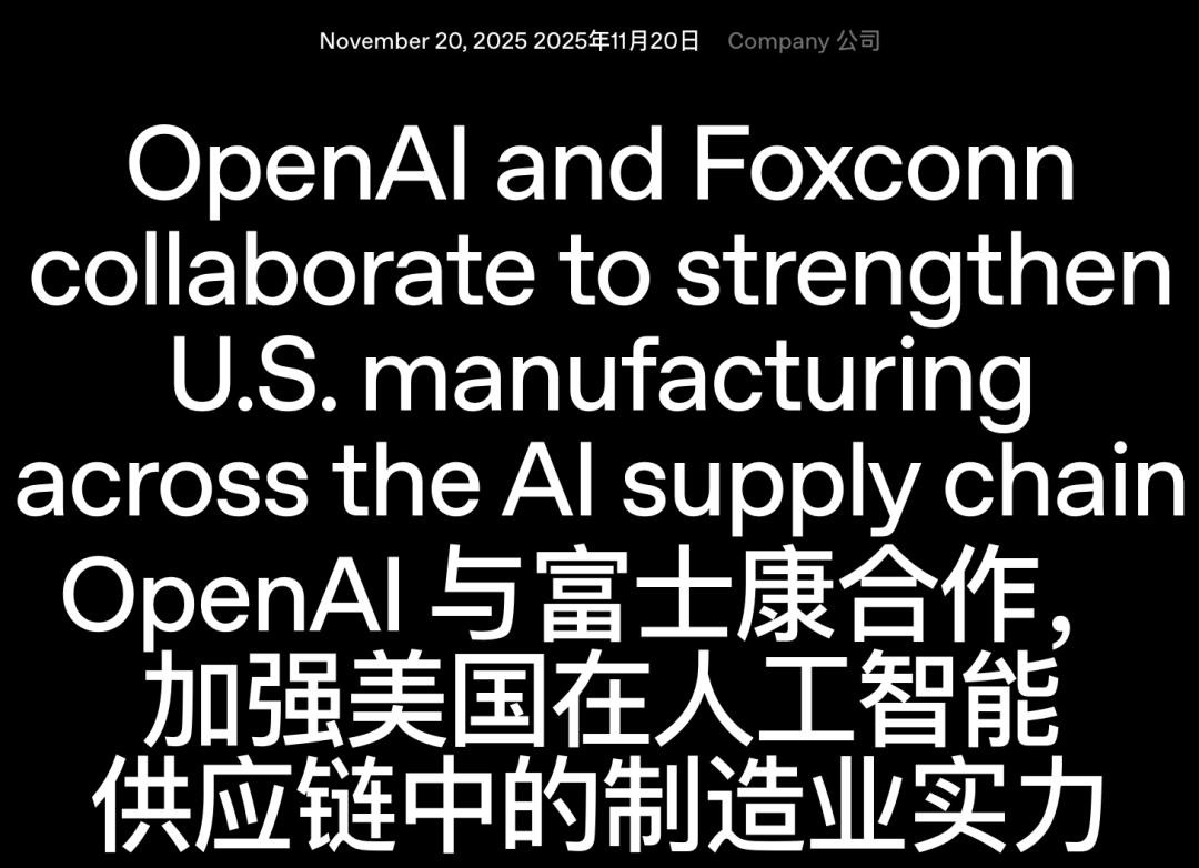 OpenAI与富士康的联手,意在构建一个完全位于美国境内的、具有韧性的供应链。