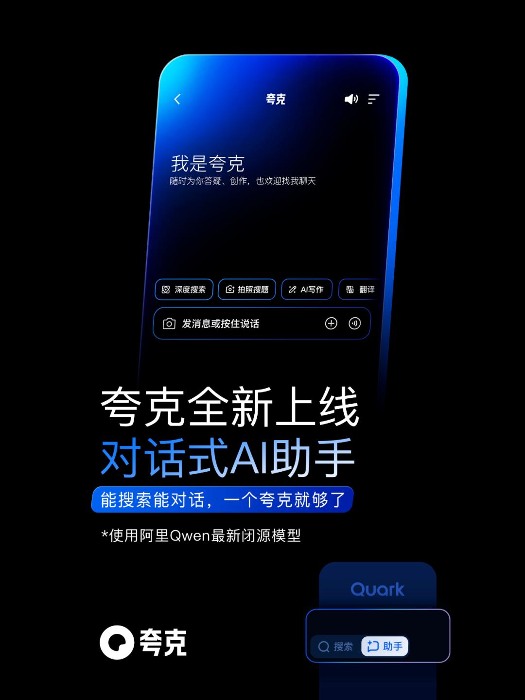 今年3月夸克升级为“AI超级框”,被阿里明确为AI旗舰应用;一个月前,夸克上线AI对话助手,在此前搜索框的基础上,新增了AI助手框。当时外界不少声音称,夸克要做中国的ChatGPT。