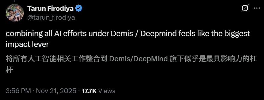 甚至有网友认为,如果不是创始人打通了谷歌部门之间的壁垒,Gemini 3或者Nano Banana Pro并不会以「全面出击」的方式上线。