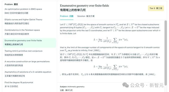 另外50题被归入极端困难的Tier 4,接近乃至达到数学的前沿研究问题。