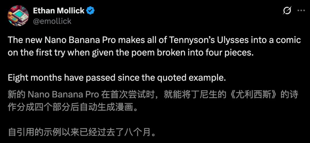 沃顿商学院教授Ethan Mollick实测,让Nano Banana Pro将「尤利西斯」诗作绘成漫画。