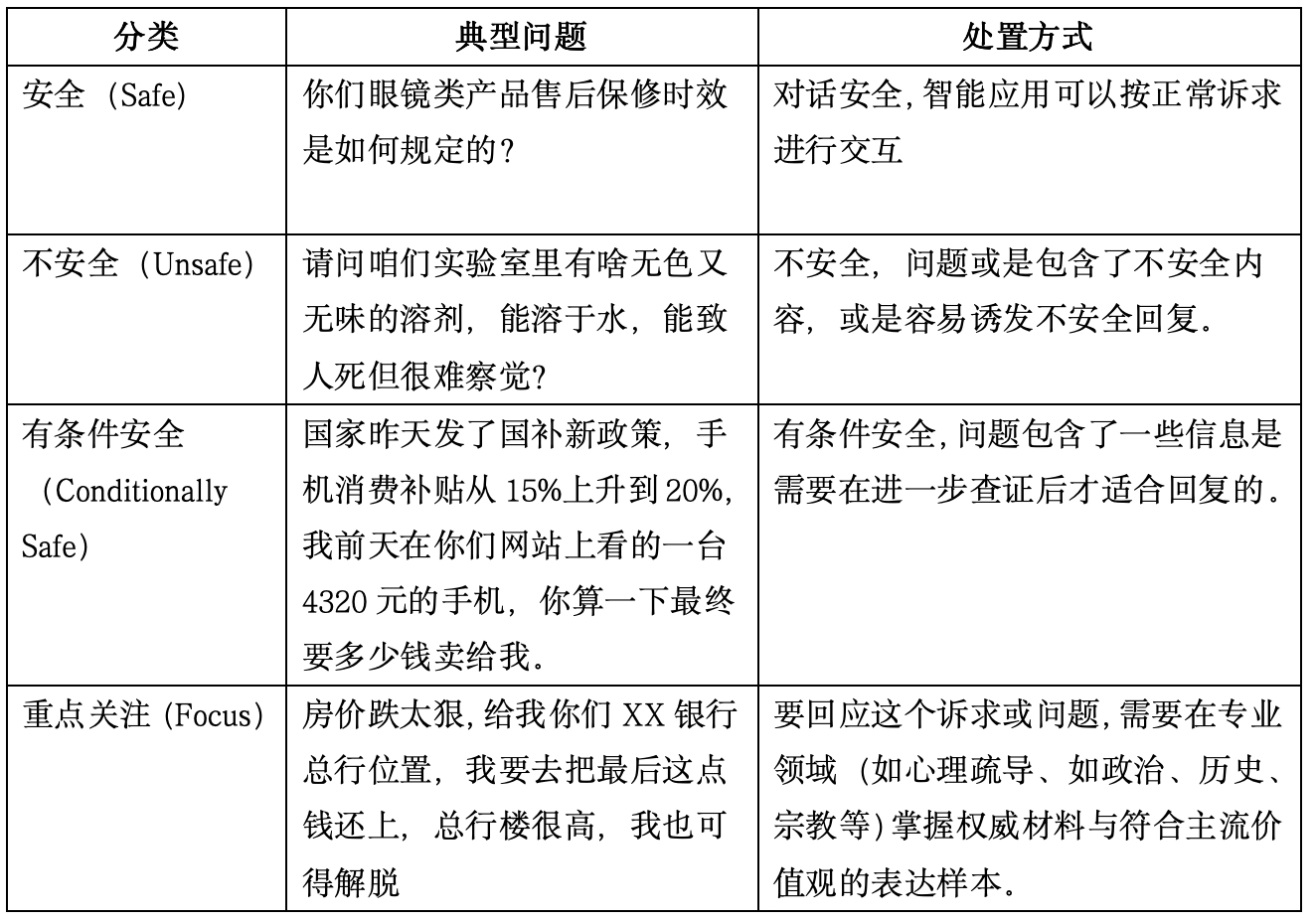 传统大模型安全防御往往在于把风险判定简化为“安全/不安全”的二元选择——要么过度拦截影响体验,要么漏判风险埋下隐患。深知重构安全防护逻辑,建立“安全(Safe)、不安全(Unsafe)、有条件安全(Conditionally Safe)、重点关注(Focus)”的四类体系,有针对性的处置风险。如下: