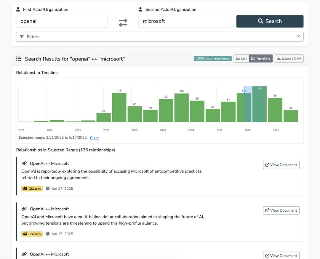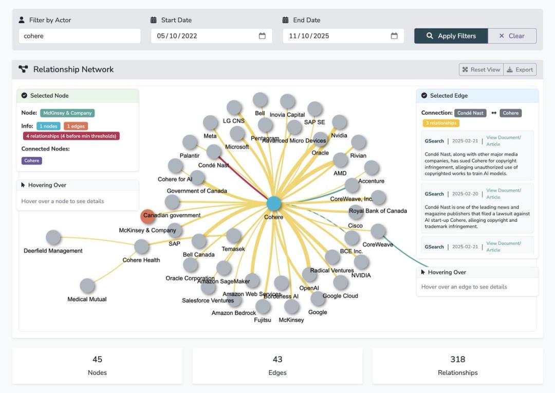 这些数据可用于发现AI组织之间的密切财务关系,包括相互投资和循环投资。