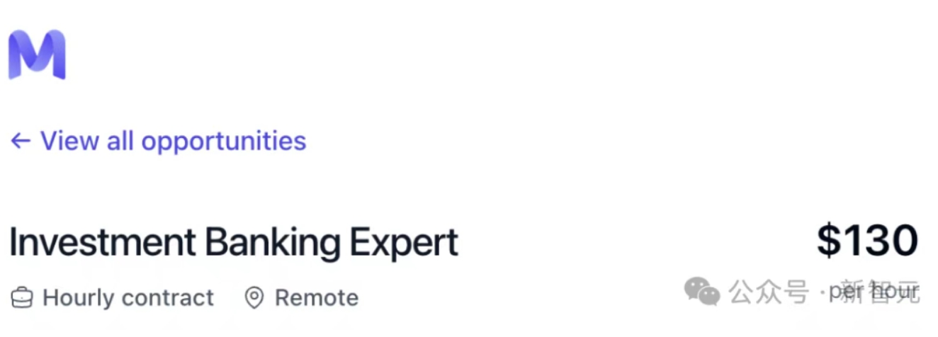 Mercor的一则面向投资银行专家岗位的招聘表示,他们正在寻找拥有三年及以上投行经验的候选人,最好是来自高盛、摩根大通、摩根士丹利等顶级投行。
