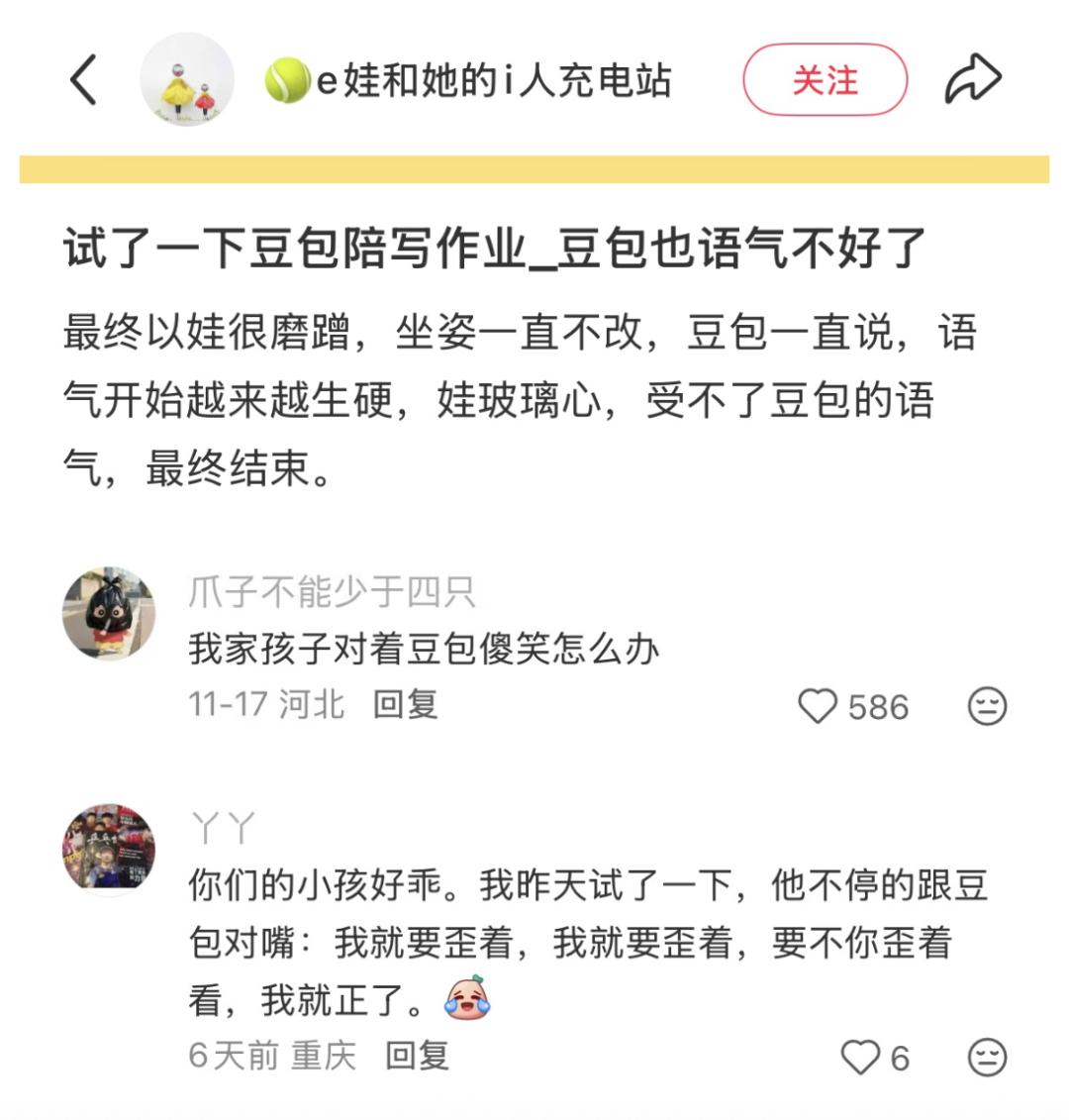 于是这种育儿方式很快被全国各地的爹妈实操起来,又带来一次大型别人家的孩子分流现场,育儿博主们分享的都是《感谢AI让我彻底躺平》《豆包果然比妈妈有耐心》《十分钟写完一个多小时的作业》。