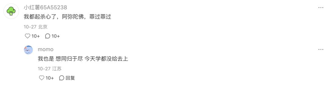 一位小红书网友创建了一个叫《妇愁者联盟》的群聊,里面都是崩溃的小学学渣家长;另一位网友建议把辅导作业列入满清十大酷刑,“整场下来喝五十次水,上三十次厕所,平均一分钟掉一次笔,两分钟使用橡皮擦一次”“我大概十分钟发小火一次,半小时彻底疯一次”。