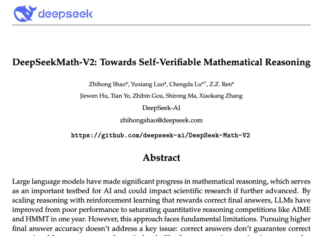 智东西11月27 日报道,今日,DeepSeek开源了“奥数金牌级”模型DeepSeekMath-V2,该模型具备强大的定理证明能力。