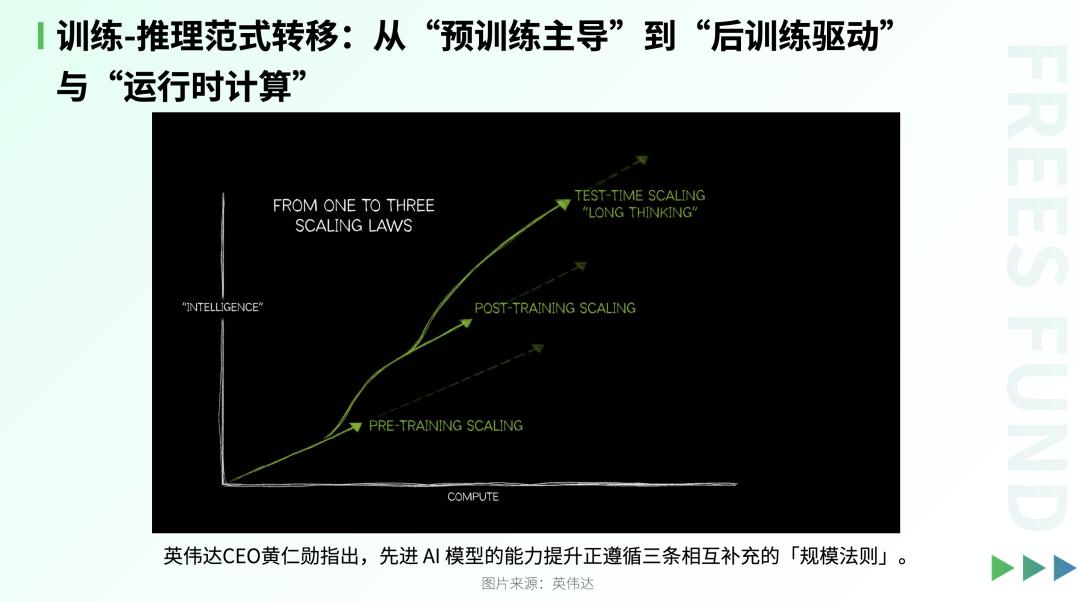 正如英伟达CEO黄仁勋所指出的,先进 AI 模型的能力提升正遵循三条相互补充的“规模法则”: