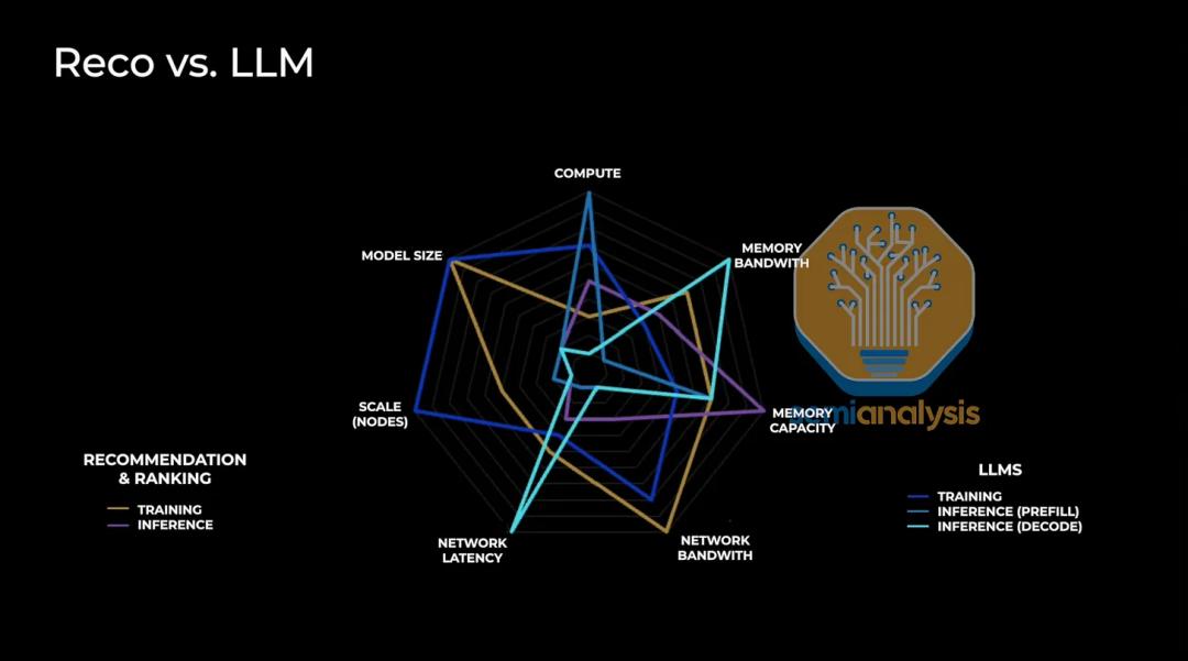 与大模型工作负载相比,RecSys工作负载的算术强度要低得多,这意味着相对于传输的每一位数据,需要的FLOPs更少。