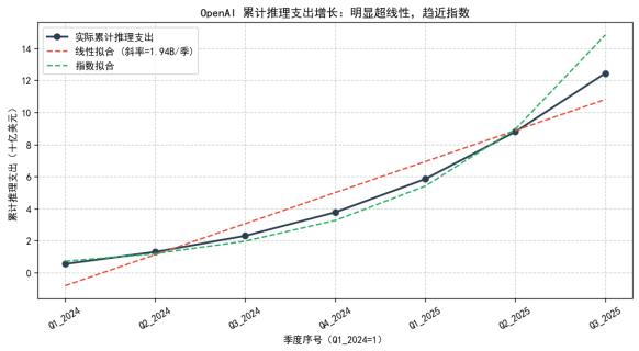 若延续此趋势,2025全年推理支出或超120–140亿美元,而OpenAI的收入仅仅呈线性增长。