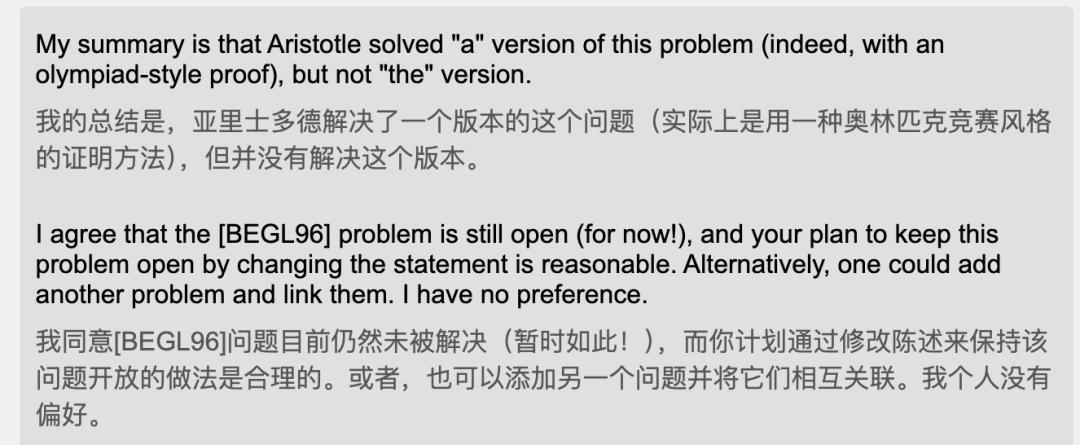 这事一直没有人发现,直到Boris Alexeev把问题丢给自动化工具Aristotle,没想到AI在几小时内自主找到了漏洞,并用Lean完成了形式化证明。