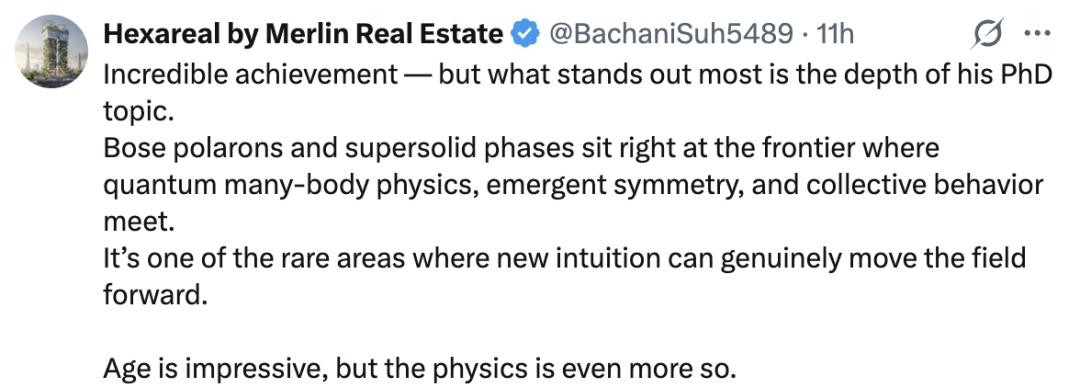 真正令人惊讶的不是他的年龄,而是选题深度——玻色极化子与超固相恰处量子多体、涌现对称性与集体现象的交汇点。在如今,很少有这样还能靠直觉推动前沿发展的领域了,
