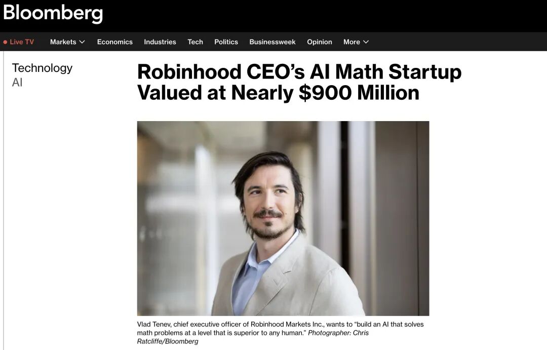 Harmonic的故事从一个金融圈明星开始:其联合创始人Vlad Tenev,就是知名券商Robinhood的联合创始人与前CEO。这一次,他从金融与算法交易领域进入AI,引发了资本与媒体的广泛关注。