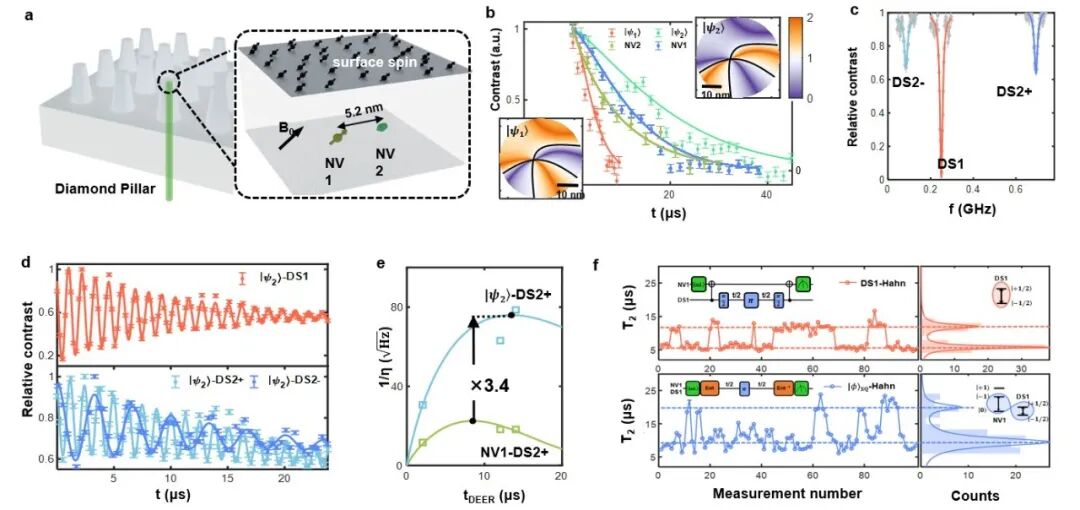 通过材料制备与量子操控两条路径的协同创新,团队首次开发出纠缠增强型纳米单自旋探测技术,在固态体系中同步提升了微观磁信号灵敏度与空间分辨率,为纳米尺度量子精密测量技术的发展开辟了道路。