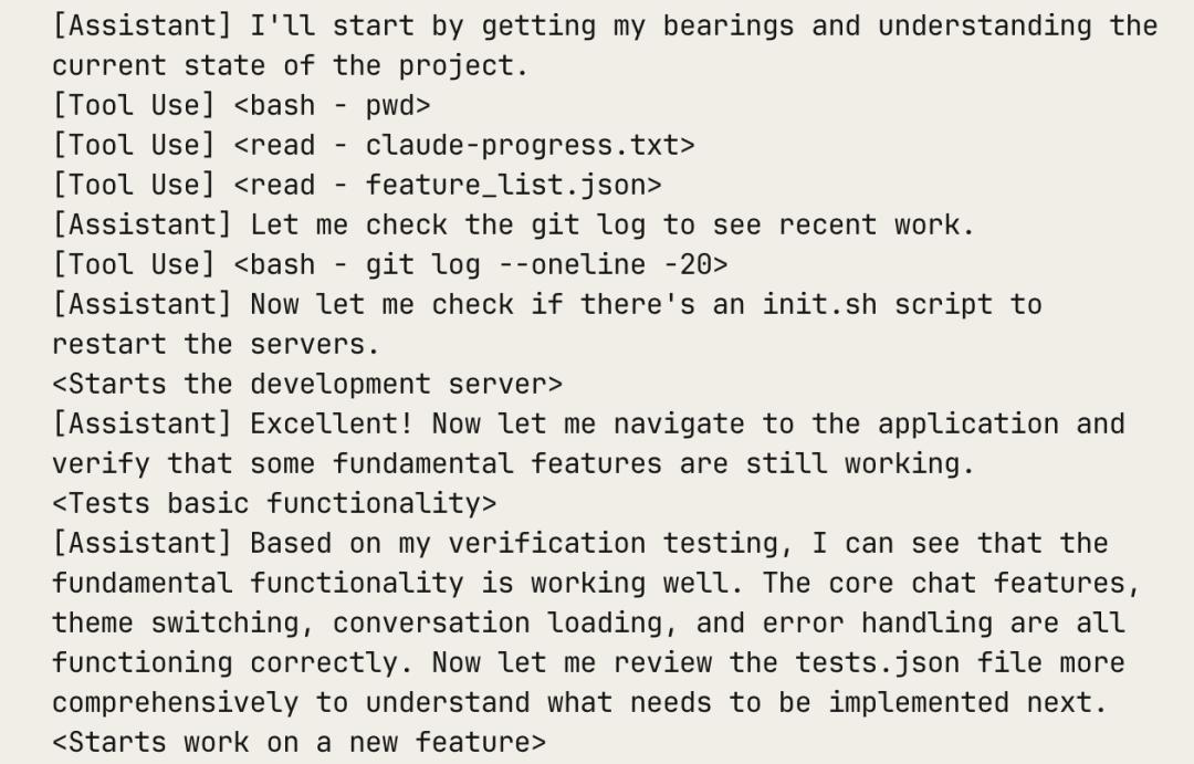 通过上述机制,每次编码智能体启动时都会先执行一套简单但实用的步骤: