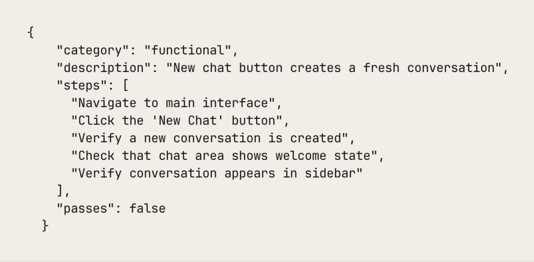 这些功能一开始都标记为「failing」,让后续智能体清楚还有哪些功能没完成。