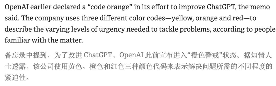 几周前,为了改进ChatGPT,OpenAI曾宣布进入了「橙色警报」状态。