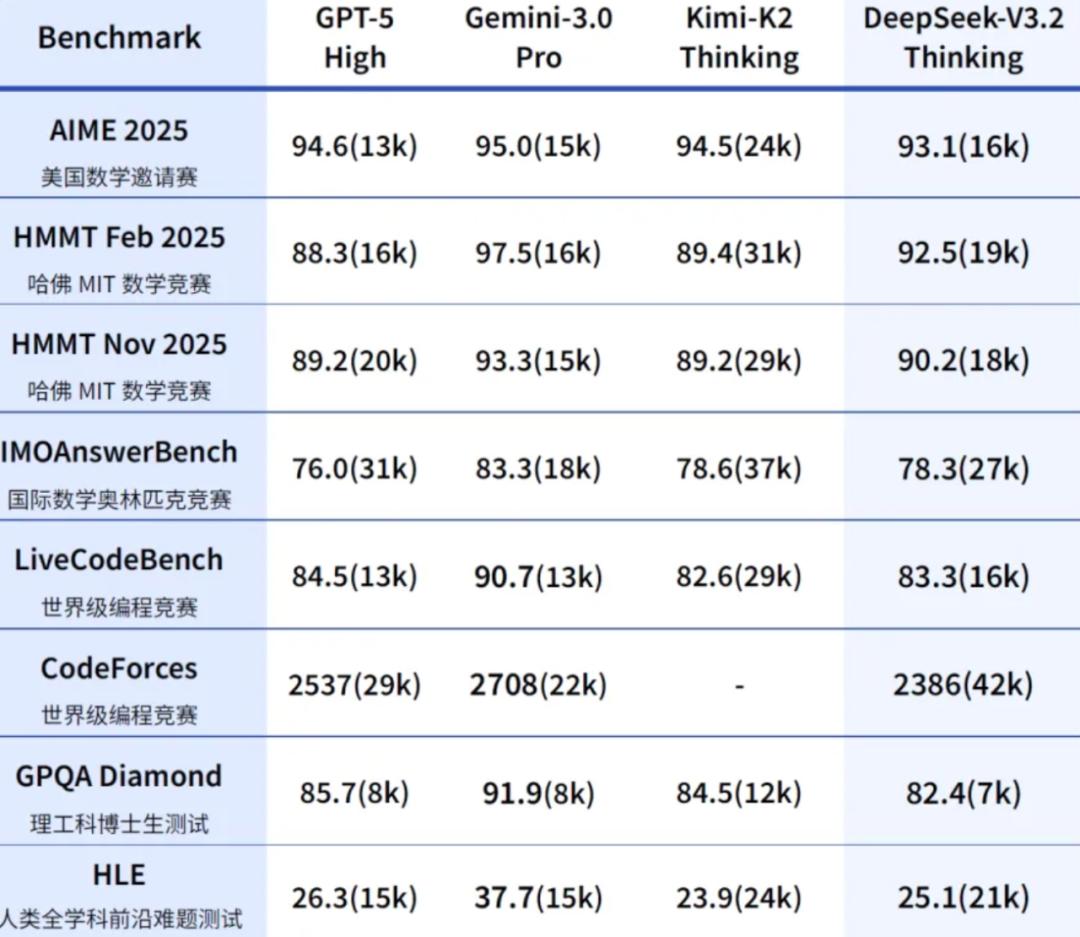 据DeepSeek最近测试,Gemini-3-Pro在多项基准测试中全面领先GPT-5。