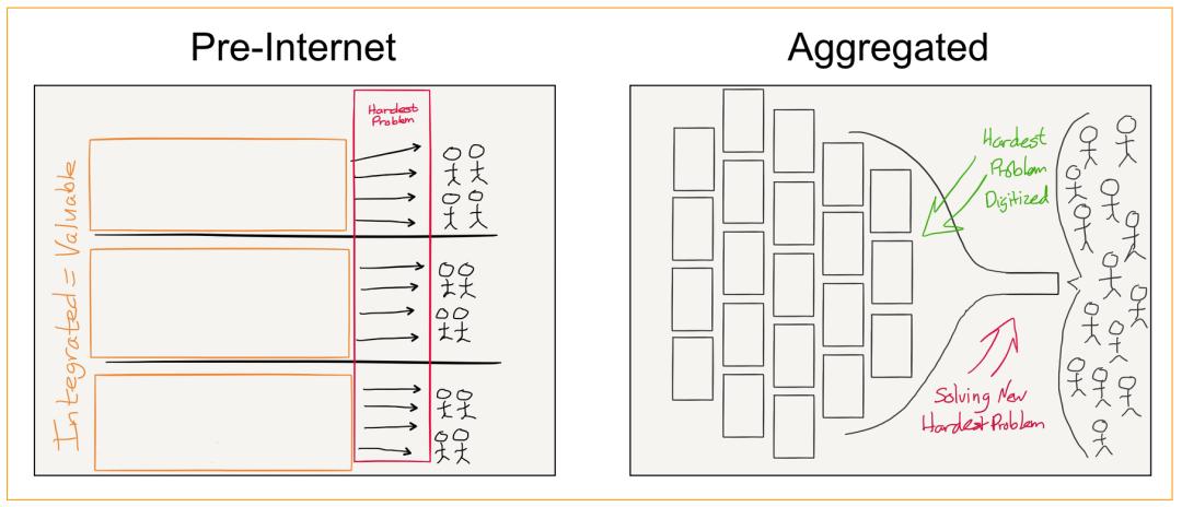 聚合者(Aggregator)靠不断优化用户体验赢得市场,因此也更受欢迎,不同于传统垄断企业。