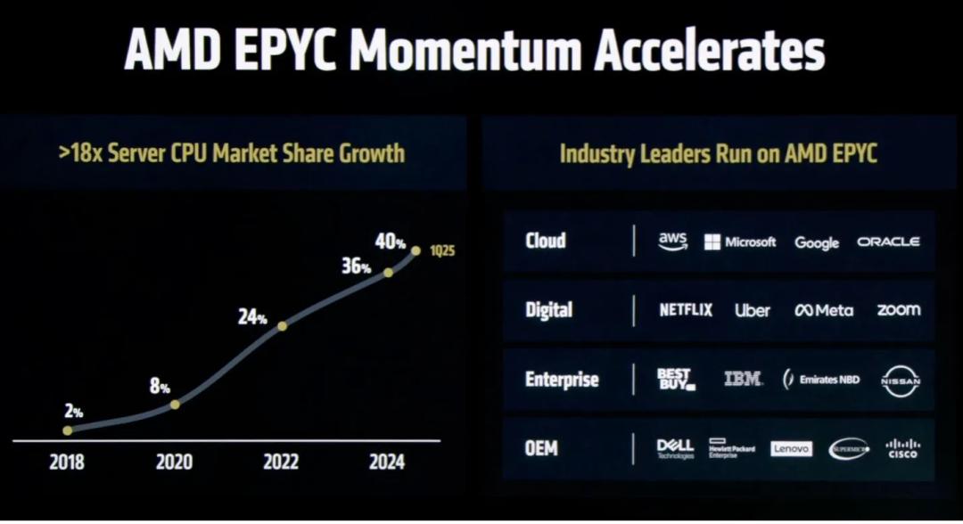 这波崛起并非发生在本地部署或政府系统(这些仍由 Intel 主导),而是在那些大型云厂商手中。