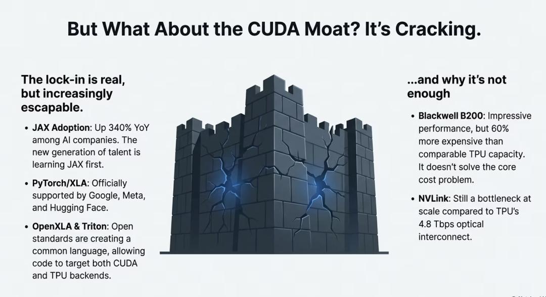 他们有资源、有动机(虽尚未全面启动)去「攻破」 CUDA的壁垒,就像他们曾打破Intel的垄断一样。