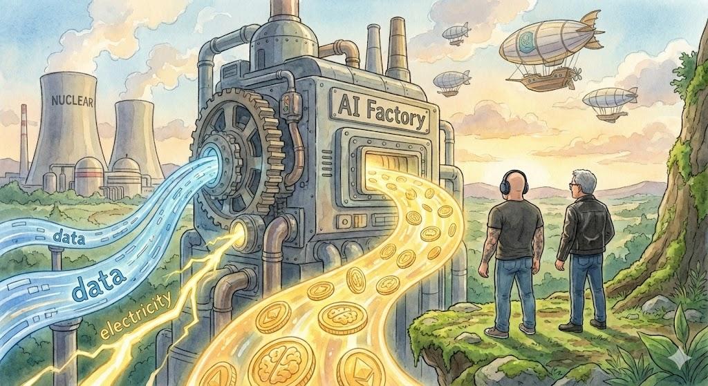 Rogan: 你之前用了一个很有趣的词,你说数据中心现在是“AI工厂”。这只是一个用来形容的比喻吗?还是说它的运作方式真的像个工厂?