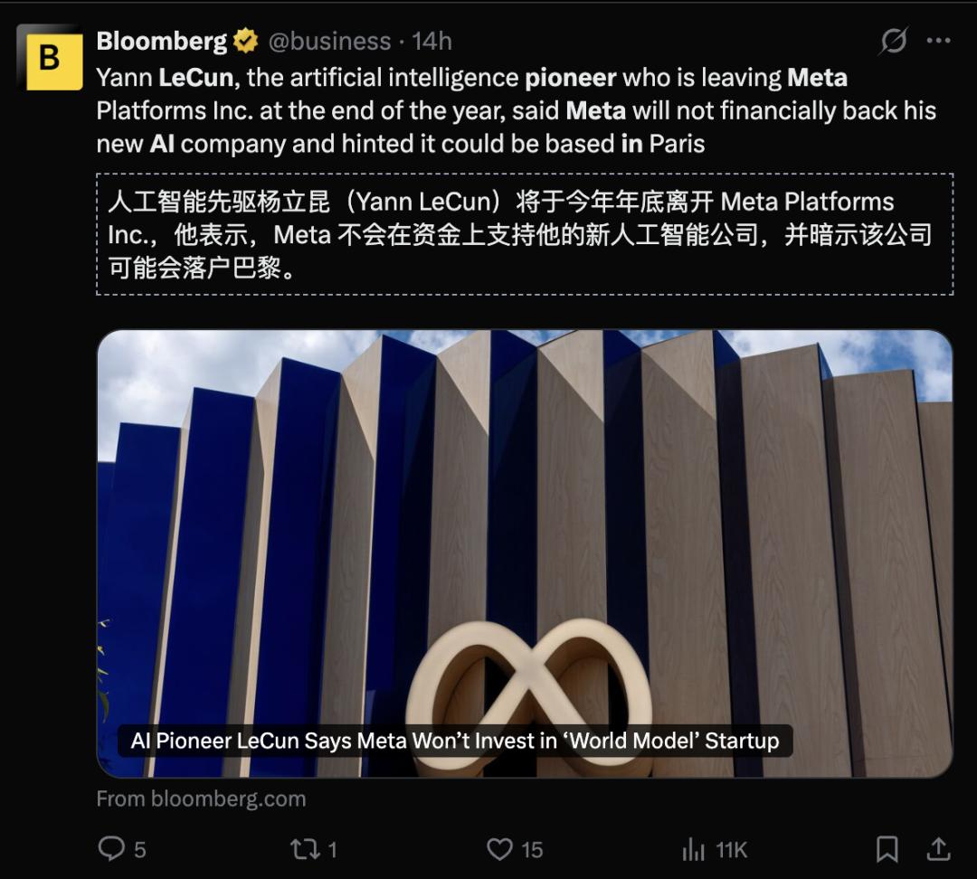 在离职信中,LeCun表示尽管与Meta分道扬镳,小扎等Meta高管支持其创业项目。