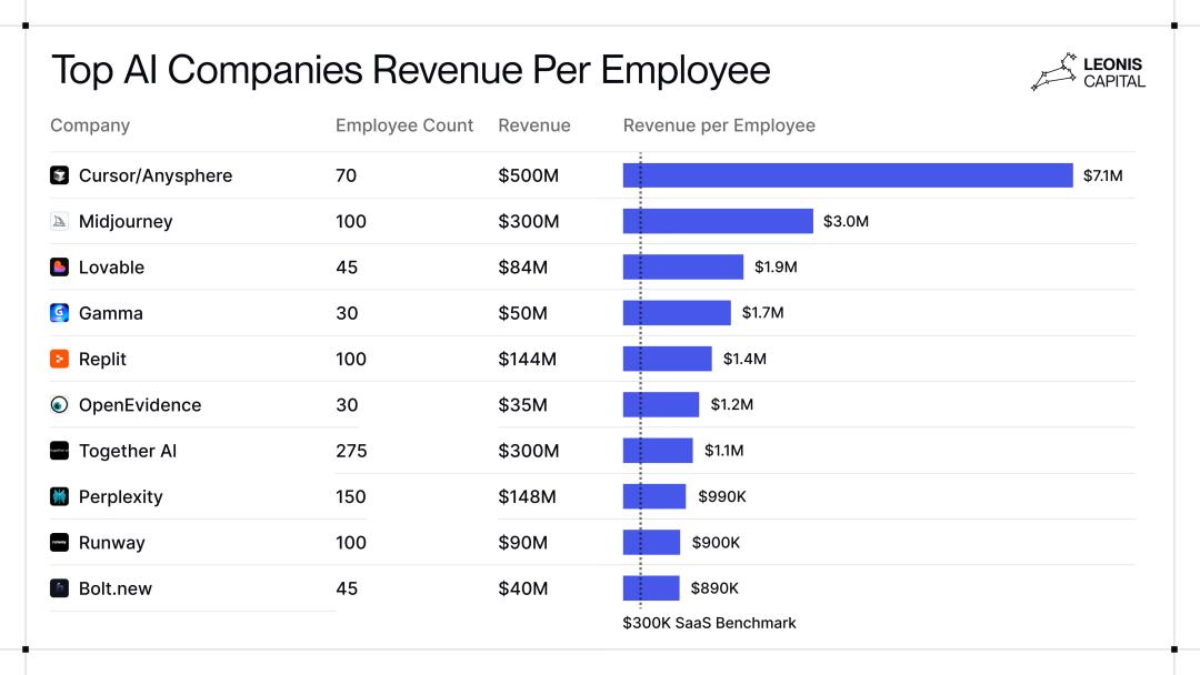 Leonis举例说,AI编程工具Cursor仅用一年时间,其年度经常性收入就突破了1亿美元——