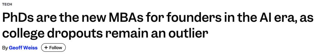 在AI时代,博士头衔正取代MBA文凭,成为创业者的新的「敲门砖」,而大学辍学生只是例外现象。