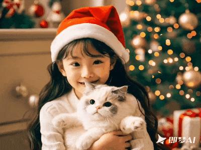 图注:输入“一个戴着圣诞帽的小女孩抱着布偶猫”生成效果,图源: 字母榜