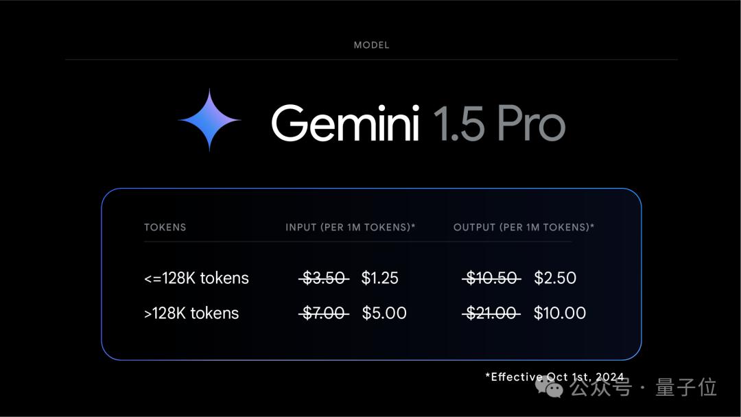 价格方面,1.5pro输入token降价64%,输出token降价52%,对增量缓存token降价64%,10月1日开始生效。