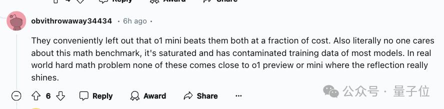 不过倒也有网友表示,数学基准也没啥用。它已经饱和,而且污染了大多数模型的训练数据。在现实世界的数学难题里,这些还是没办法跟o1系列相提并论。