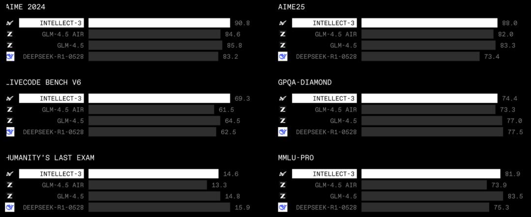 INTELLECT-3 也证明:即使不是大实验室,也可以训练出与顶尖团队同台竞技的模型。