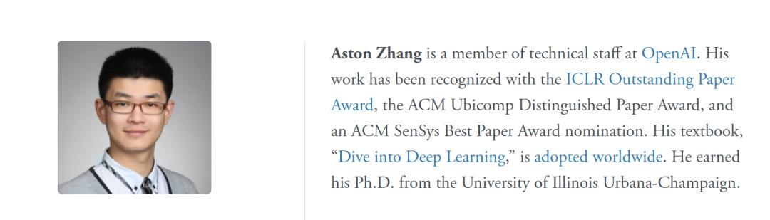 Aston Zhang来自在伊利诺伊大学厄巴纳-香槟分校攻读博士学位,现在是OpenAI的研究员。