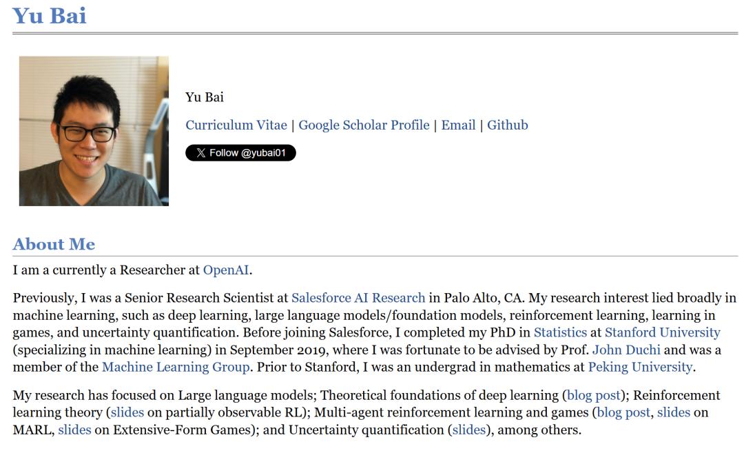 比如,最早预告GPT-5.2的OpenAI华人研究员、北大校友Yu Bai。
