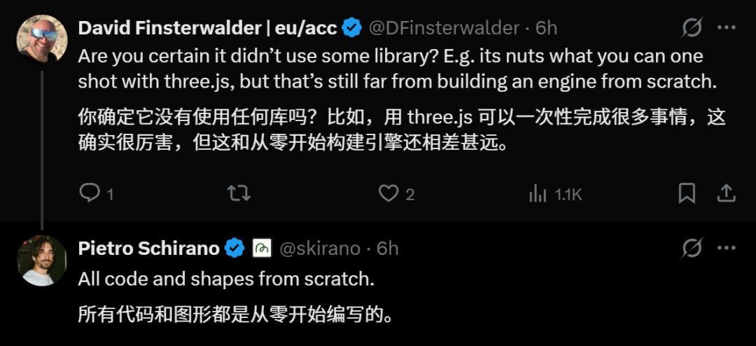 有人质疑道:这个图形引擎会不会是GPT-5.2调库完成的?CEO表示,所有代码和图形完全是从0开始写的。