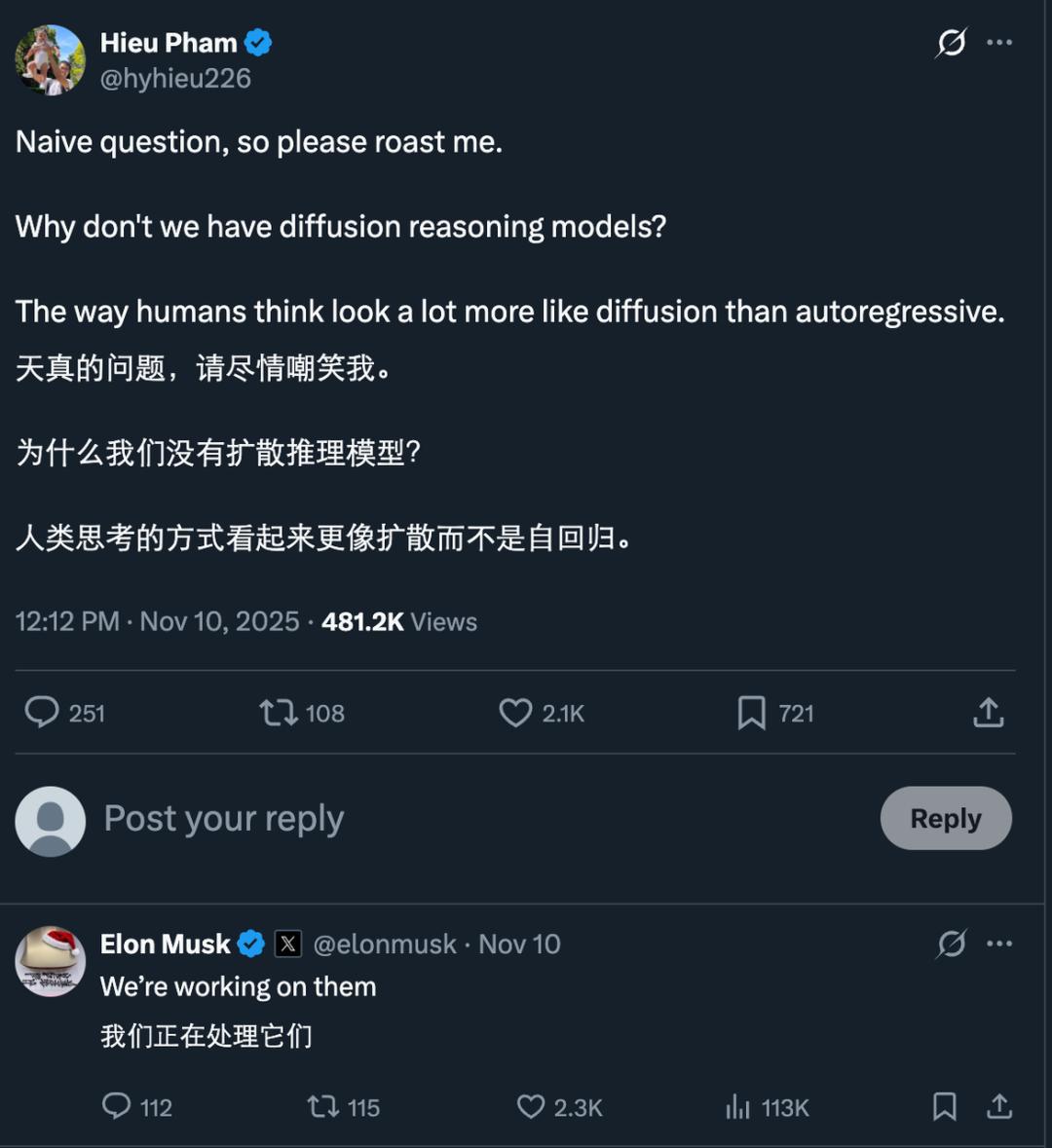 万万没想到,年初还是个小众方向的「扩散语言模型(dLLM)」,现在已经被扩展到千亿参数的规模了。
