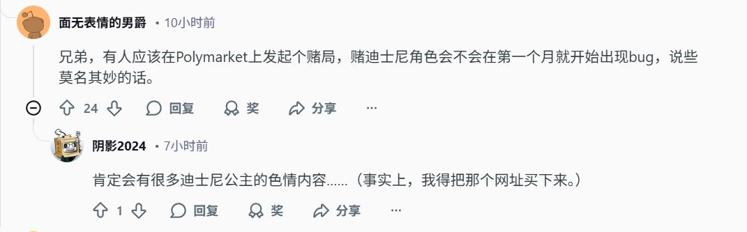 甚至有人喊开盘,赌多久迪士尼角色开始说疯话。