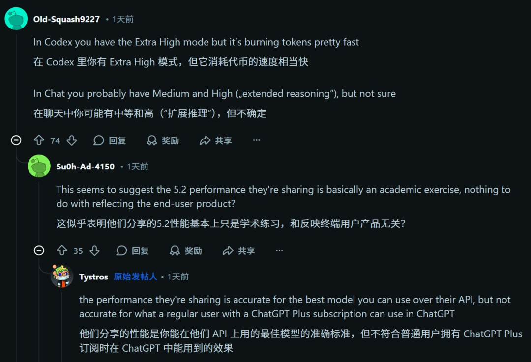 而现在的5.2版本中,OpenAI增加了更高的「xhigh」推理力度,所以基准测试中显示的性能,要远远超过ChatGPT付费用户的实际体验。