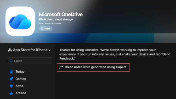 IT之家 12 月 15 日消息,微软或已找到一种巧妙方式推广 Copilot。近日有网友发现,苹果 App Store 中部分微软应用(如 OneDrive)的更新日志底部新增了一行标注:“* 本更新说明由 Copilot 生成”。值得注意的是,苹果公司并未强制要求开发者披露更新日志的撰写方式,此举疑似微软有意借机低调宣传其 AI 助手 Copilot。