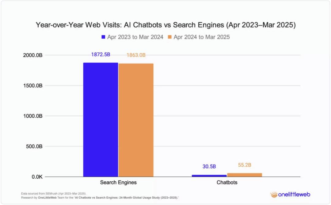 数据显示,谷歌的传统搜索平均只有3-4个词,接入AI模式后查询字数翻倍增长,而ChatGPT等聊天机器人平均提示词甚至长达60个词。