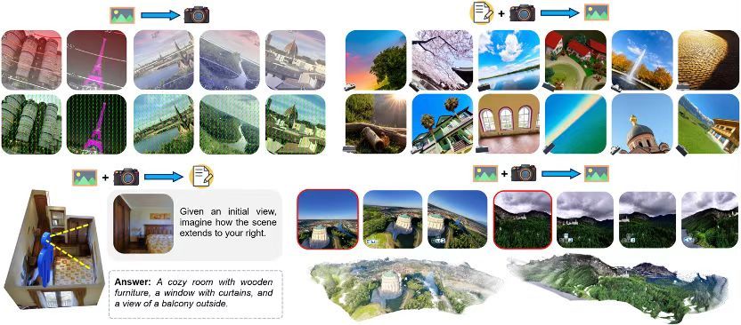 其模型统一了以相机为中心的多模态理解与生成,支持空间想象、并实现灵活的跨视角应用如世界探索(图源/企业)