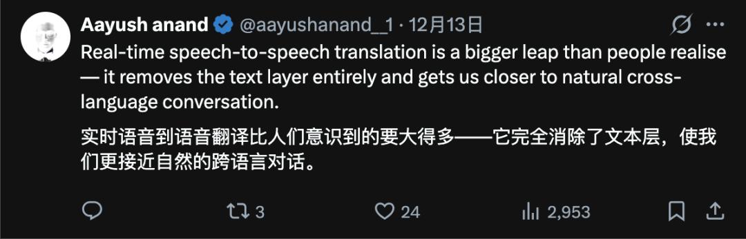 它不需要把声音转成文字再转回来,它是直接听、直接想、直接说。
